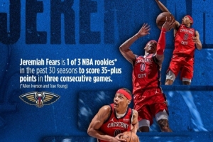 他也成为了过去30个赛季中,NBA仅有的三位新秀之一,能够在连续三场比赛中每场砍下35+分。另外两位是艾弗森和特雷·杨。