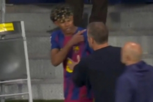 弗里克本想与亚马尔庆祝,但后者对他说了一些话,让这位德国教练感到惊讶。在返回更衣室的路上,亚马尔与教练组成员情绪激动地交流。